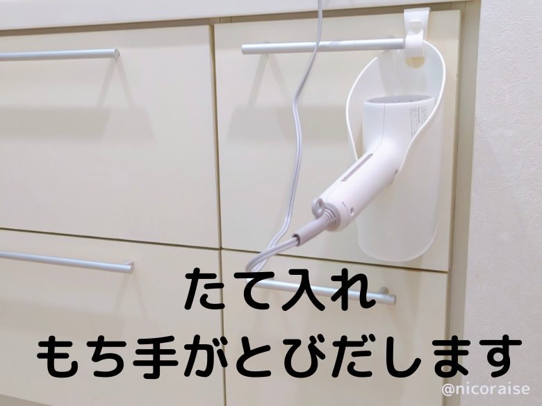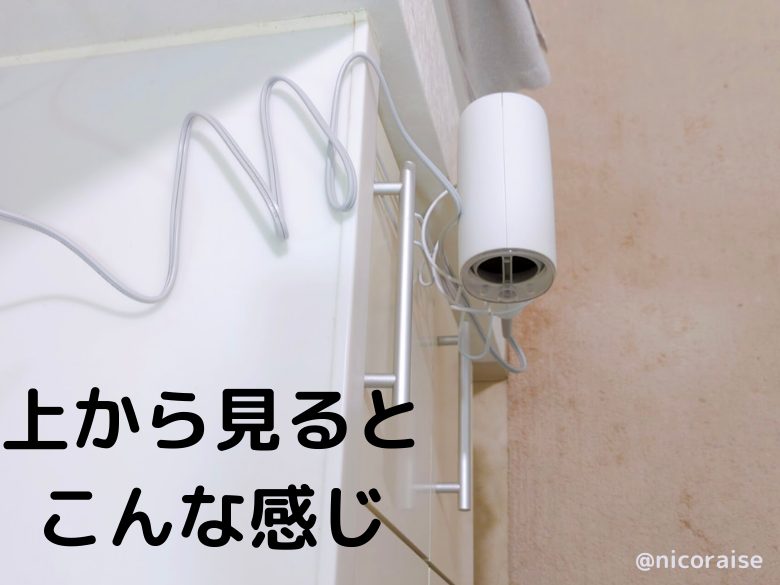 ですが、ドライヤーを持ち替えないとしまえないので、髪を乾かした流れでサッとしまえず、ちょっと面倒かと思います。