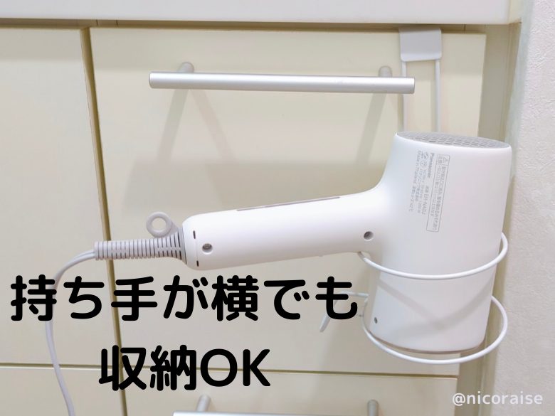 100均で買えるドライヤーホルダーで、実際にパナソニック ヘアドライヤー ナノケア EH-NA0J-Aを収納してみました。