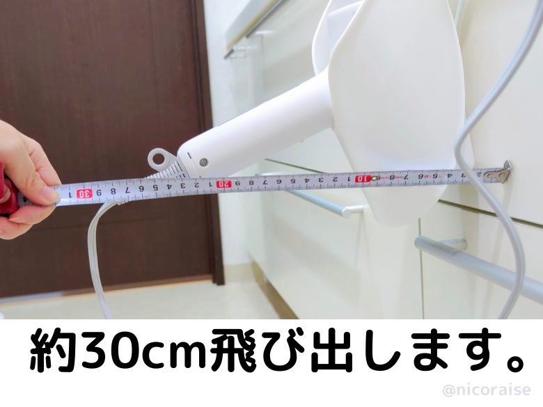約30cm飛び出すので、洗面所が狭い人にはちょっと大変かもしれません。