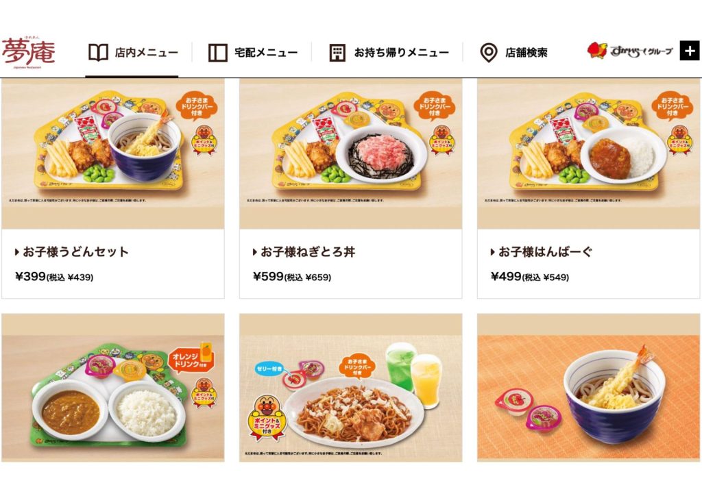 うどん、カレーライスなどのキッズメニューもあるのでたくさんたべるお子さんにもうれしいですね。