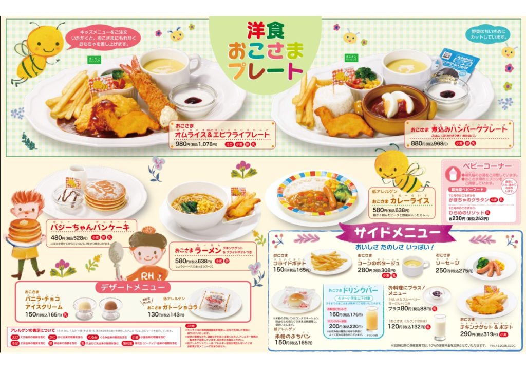2種類のベビーフードの他、キッズメニューも豊富なロイヤルホスト。