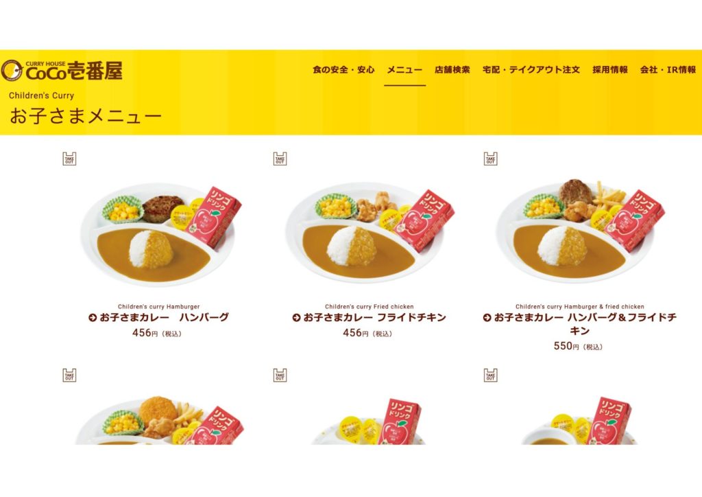 カレーチェーンのCoco壱番屋には、ベビーフードだけでなく1歳からのカレーも!さすがカレー屋さん。