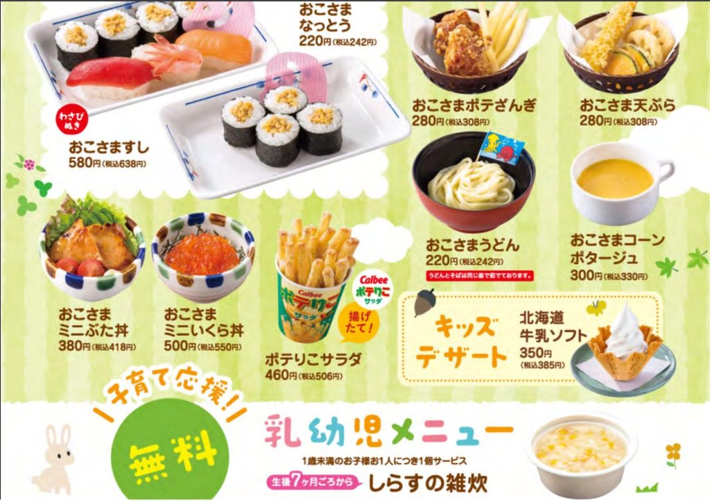 回転寿司チェーンのかっぱ寿司にもベビーフードの用意があります。