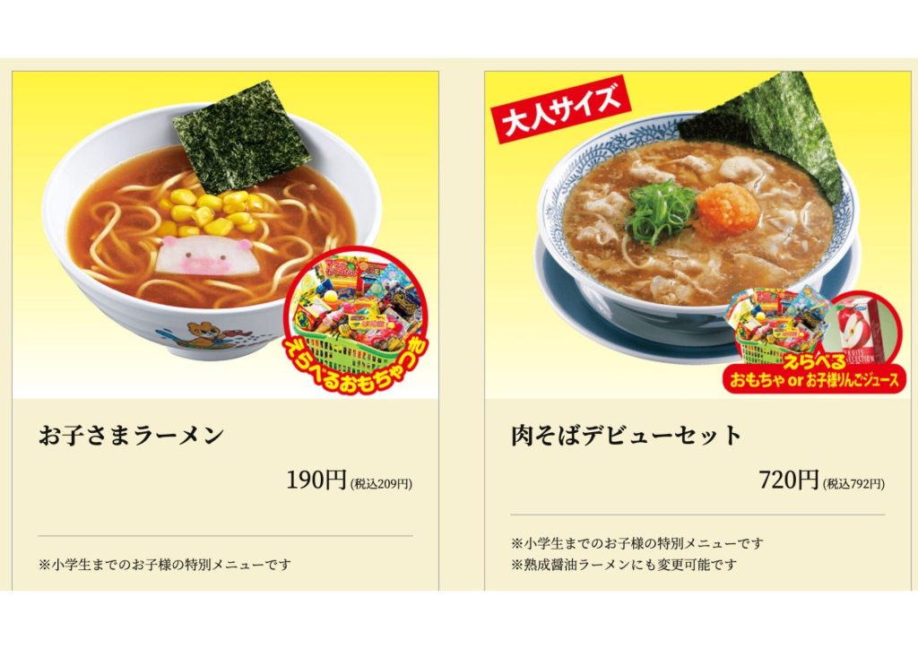 - お子さまラーメン(税込209円)