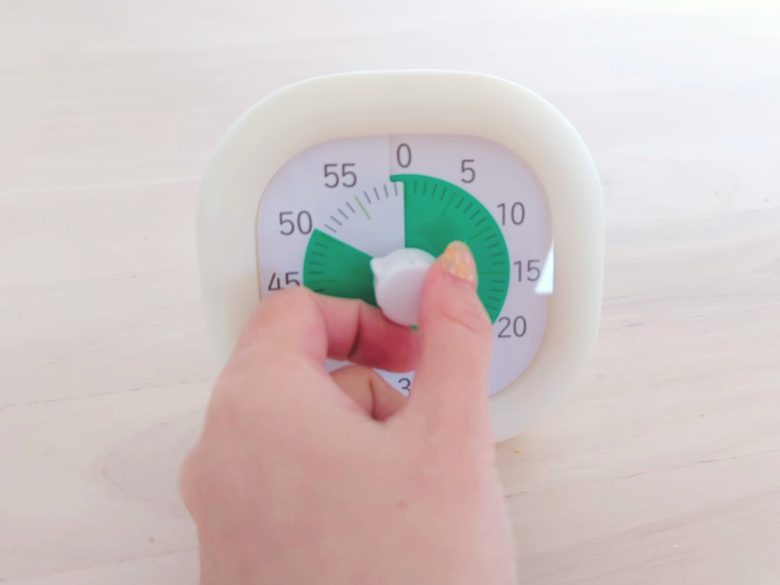 「早くしなさい」「もうすぐ終わり」「急いで」など注意してしまう日が続いていましたが、時間は抽象的で子どもには理解できないもの。
