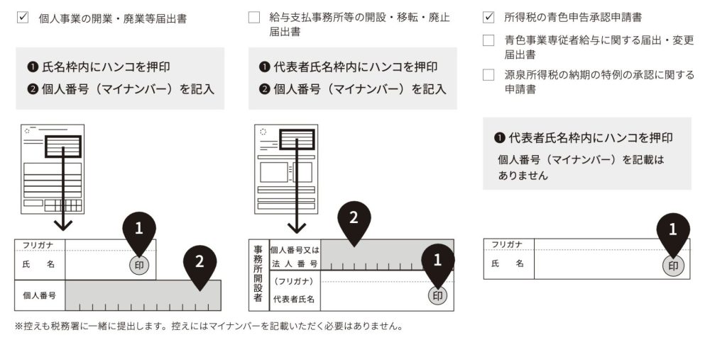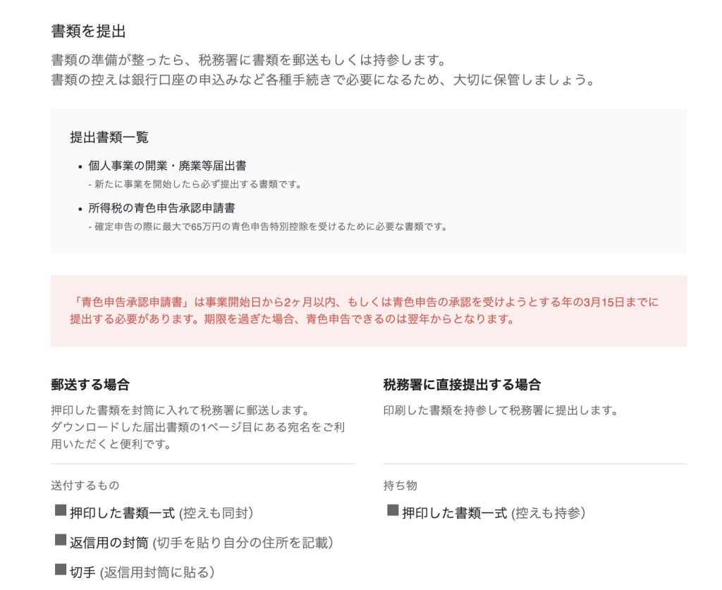 - 個人事業の開業届出書、青色申告承認申請書を税務署に提出