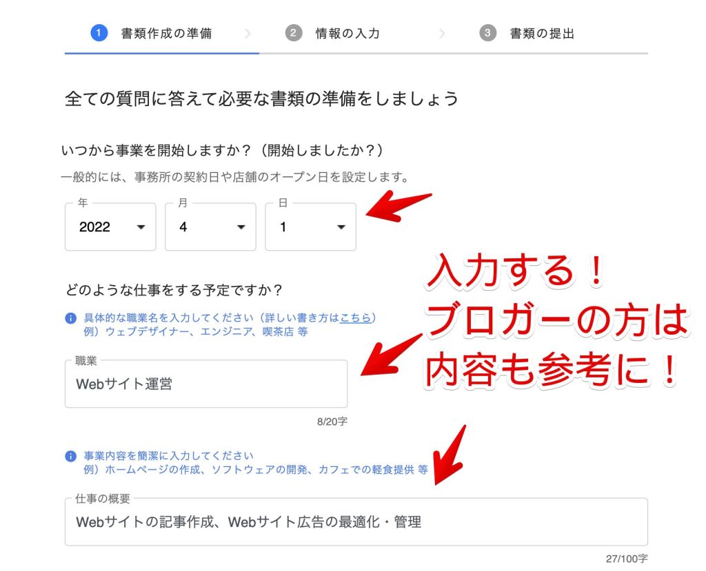 書類を作成するために必要事項を記入していきます。