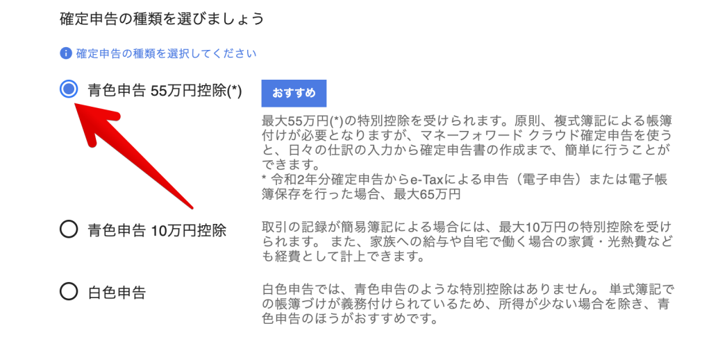 クラウド会計ソフトを利用し、確定申告を行うのであれば「55万円控除」を選びましょう。