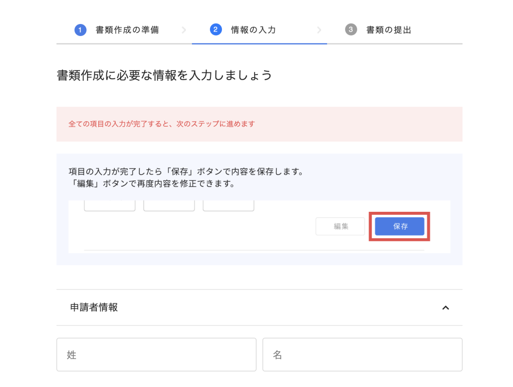 まずは申請者情報を入力します。