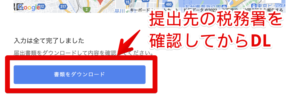 提出先の税務署を選び、資料をDL&印刷しましょう。