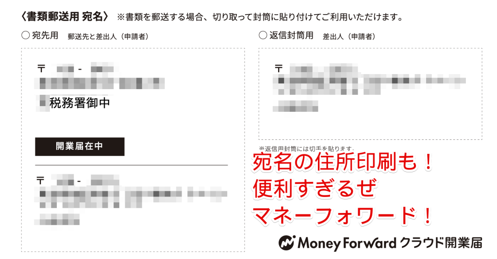マネーフォワードなら住所を印刷できるので切り取って封筒にはればOK!