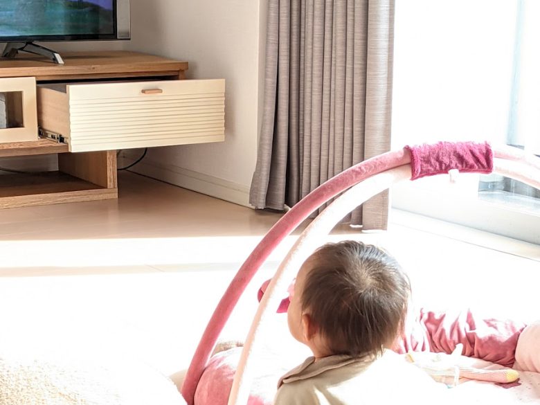 子どもには「テレビに近づかない」という指示は難しいので「テレビ見る時はここでみて」と伝えたほうが理解しやすいですよ