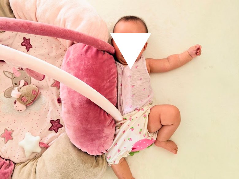 低月齢のうちはマットのうえでうつ伏せ寝しないように大人が見守りましょう。